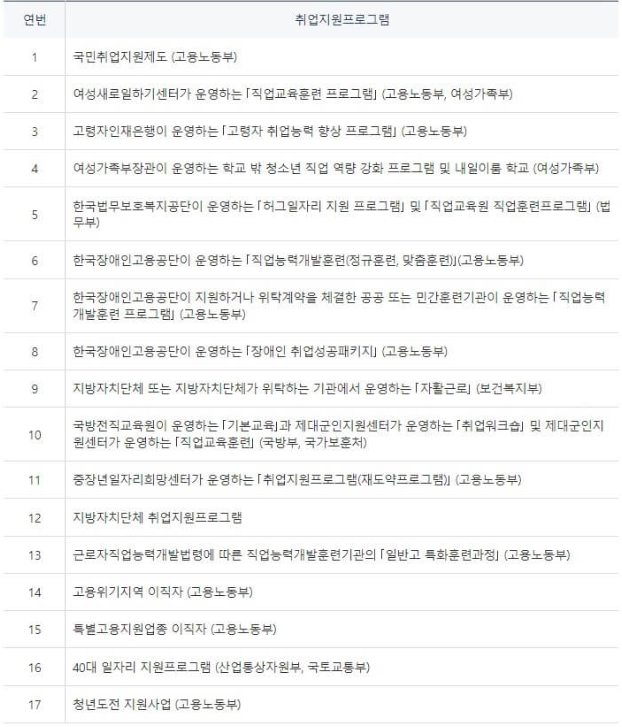 고용노동부장관이 지정하는 프로그램은 아래와 같습니다.